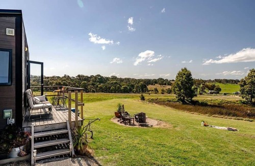 Spend your next countryside weekend getaway at Gold Fields by Tiny Away, Victoria. Where you can take in to enjoy the surrounding open fields, dense woods, and farm animals. The tiny home is close to panoramic views, city lights in the distance, walking and riding trails, and the city of Ballarat, which is only a 15-minute drive away.