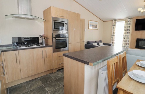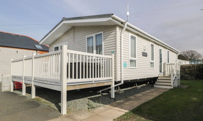 Gold Lodge (201), a single-storey caravan, consists of an open-plan living space with oven, gas hob, microwave, fridge/freezer, kettle, toaster, dining seating for four people, and sitting area with TV and electric fire. Outside, there is enclosed decking with furniture. Sorry, no pets and no smoking. You'll find a shop in 1.2 miles, pub in 0.6 miles, beach in 0.5 miles, and river in 1.5 miles. WIFI is available at an additional cost. Fuel, power, bed linen, and towels inc. in rent. Gold Lodge (201) is a lovely base for a rural retreat in Gwynedd. Note: Steps up to property - please take care. Note: there is a Good Housekeeping Bond of 350GBP
