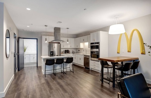 Welcome to the Lodge! This specific 2 bedroom unit uses vintage charm and modern elegance to create a one of a kind experience paying homage to the building's roots of McDonald's restaurants.