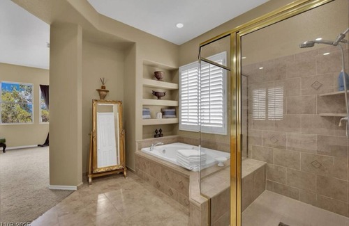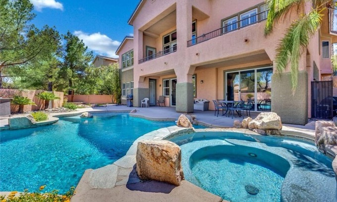 Golden Hour Estate-Pool/jacuzzi/Gated/Lux is located in Summerlin. Golden Hour Estate-Pool/jacuzzi/Gated/Lux provides accommodation, featuring TV, Security/Safety, Fireplace/Heating, among other amenities. This House features TV, Security/Safety, Fireplace/Heating, to make your stay a comfortable one.
