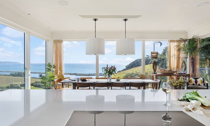 Golden Meadow, a stunning house that accommodates up to 14 guests in 7 bedrooms, is the ideal wedding stay for those looking to celebrate alongside family and friends. Its unique blend of luxurious interiors and breathtaking coastal views ensures an unforgettable experience.