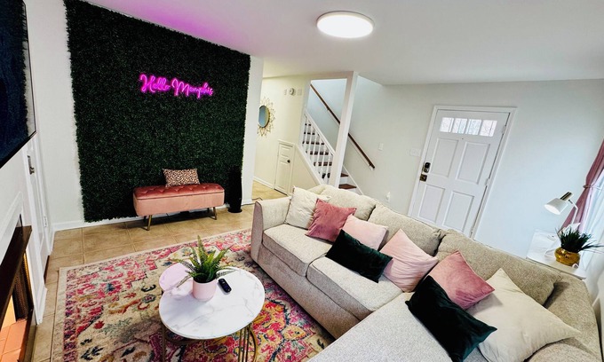 Experience Memphis charm in our stylish townhome! Steps from the University of Memphis, you'll be immersed in the area's vibrant energy, with fantastic coffee shops, restaurants, and bars just a stroll away. Our chic townhome features sophisticated décor with eye-catching gold and pink accents, creating a warm and inviting atmosphere. Perfect for university visits, city explorations, or weekend getaways, our townhome is your ideal home base.