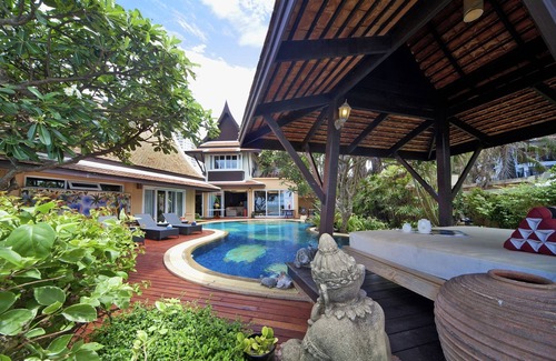 All 6 bedrooms are en-suite and individually themed. Two examples are Japanese and Old-classic European. Each one is worthy of a magazine feature, with intricate lamps, ornaments, and decorations plus air-conditioning and televisions. Total comfort is yours throughout your stay. The master bedroom is right at the top of this imposing residence. Your seating area and writing desk offering unforgettable views, and theres access to the private balcony with an additional seating area.