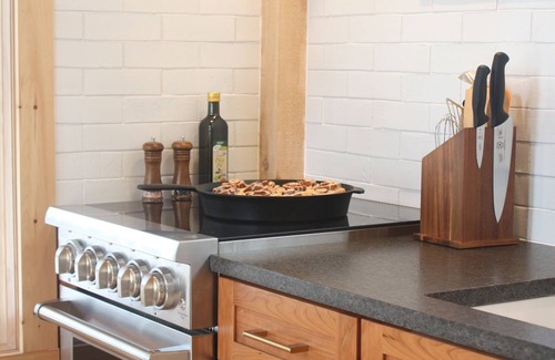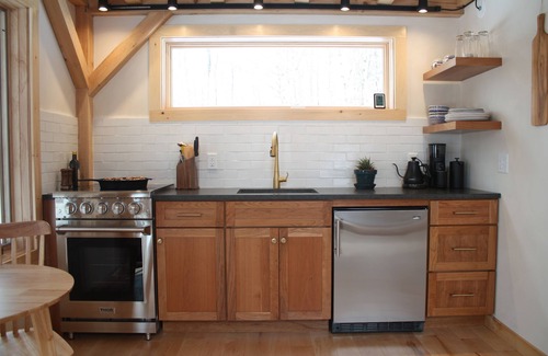 This cabin was a labor of love completed in 2025, constructed with locally milled timbers. Inside you will find a cozy king-size bed in the loft (accessible by stairs), a kitchen with a professional four-burner stove and oven, and luxurious tiled bathroom.