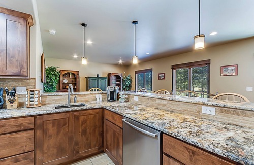 Please note that the kitchen does not have a full stove, there is a counter top cooktop burner and a counter top oven and microwave, as well as a Keurig and coffee pot. There is a propane grill on the patio. There are 3 king beds, 1 Queen, and 1 twin, with a large living/kitchen are with TV and dart board.