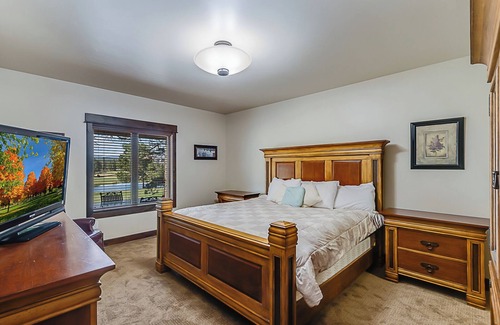 You will be staying the in the basement level of the house, with a covered patio area just steps from the course. The basement is large, (2200 sf) with three bedrooms and two baths; it is overlooking the 14th Hole at Fox Acres and Lake Shoshone with spectacular mountain views.