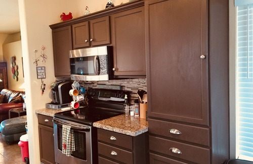 The kitchen is well stocked and has a Keurig coffee maker. The home will have a limited supply of toilet paper, paper towels, soaps, and shampoo. Visits over a week may need to restock basic necessities.