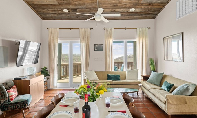 Driftwood features a private pool, spacious outdoor deck, and beautifully designed interiors that cater to all your wedding needs. The property comfortably sleeps six guests with two bedrooms and two bathrooms, providing ample space for your closest friends and family. The open kitchen and living area promote togetherness, while the large fenced yard ensures privacy as you celebrate your special day. Plus, a complimentary golf cart is included, making it easy for your wedding party to explore the local area before or after the big event.