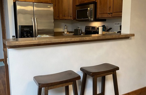Perfect family vacation! Well appointed two bedroom, two bathroom cabin with a loft and a fireplace. The loft has a beautiful partial lake view! We also added the use of our golf cart for a small daily fee (included in rental fees/cannot be used in winter-fee removed). Our cabin sleeps four comfortably. Master bedroom has a new king memory foam bed, and the second bedroom has two twin beds. The cabin is fully stocked with towels and linens for four. We have a great selection of family games and movies to keep everyone entertained. A smart TV in the master bedroom and loft, and a large TV over the fireplace with Roku allow you to log into your personal Netflix, Hulu, etc. accounts. The kitchen is fully stocked with everything you need including a regular and Keurig coffee maker, air fryer, crockpot, toaster, microwave, and dishwasher. Wonderful patio with outdoor table and chairs, additional chairs, fire pit, and gas grill. Washer and dryer included.