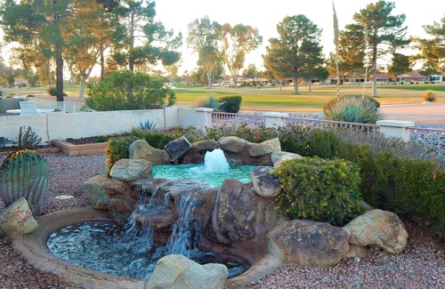 Newly renovated property in highly coveted Cottonwood section of Sun Lakes. Home overlooks a tee box on the Cottonwood golf course. 1600 + sq. foot and fully outfitted with new furniture, appliances, and linens. Come pass the day practicing your putting stroke on the backyard putting green, or relax listening to the tranquil sounds of the fountain. Rental includes use of golf cart and access to community club house. As this is an active-adult community, at least one renter must be 40 years of age and all occupants must be at least 19.