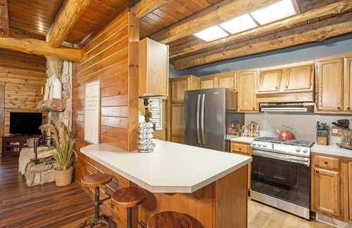 From your first step into our home you will be welcomed by the warmth of a not-so-traditional-log-cabin. Take a dip in the 8-person hot tub or enjoy your favorite movie on the 120" projector screen.
