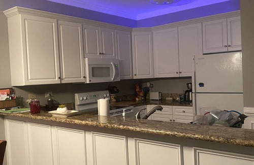 - Fully Equipped Kitchen: Enjoy the convenience of a large kitchen, complete with granite countertops and modern appliances, perfect for preparing meals or snacks during your stay.