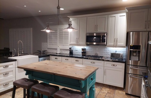 Another 6 chairand table is in the breakfastroom with 2 additional seats at black and white granite breakfast nook.***