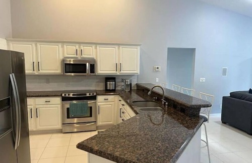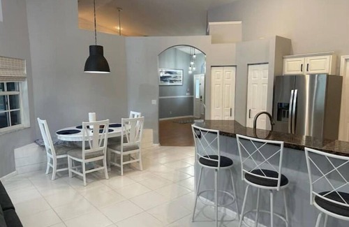 Great location, 3 bedrooms home in Lake Worth, FL. Only 11 miles from Palm Beach International Airport. Near to Turnpike Highway, Wellington Mall, restaurants, supermarkets, and 20 minutes from Lake Worth Beach Casino Ballroom. The house has a beautiful view to the Palm Beach National Golf & Country Club. 1 King size bedroom with master bath, work space, 1 Queen size bedroom, 1 full size bedroom, 1 full guest bathroom. Living room, kitchen, heated pool and lanai area. There is an extra fee for each pet, per stay.