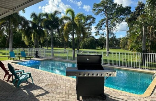Golf course view & heated pool in Lake Worth, FL is located in Lake Worth. Golf course view & heated pool in Lake Worth, FL provides accommodation, featuring Entertainment, Barbecue/Outdoor Cooking, Internet, among other amenities. This House features Entertainment, Barbecue/Outdoor Cooking, Internet, to make your stay a comfortable one.