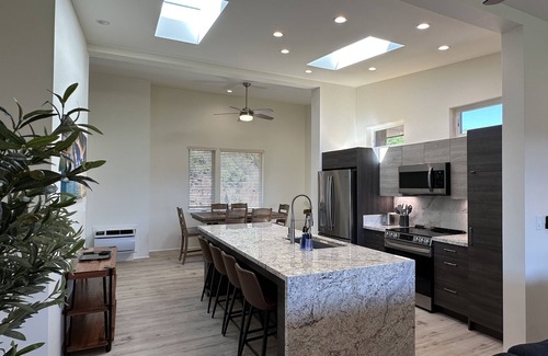 4. Modern Comfort: Our rental homes boast contemporary amenities, open floor plans, modern kitchens, granite counter tops, clean and inviting LVT flooring, wet bar, spacious and multiple common areas with large screen TVs, high-speed internet, washer-dryer inside the home and well-appointed private and en-suite baths and bedrooms each with in-room TVs.