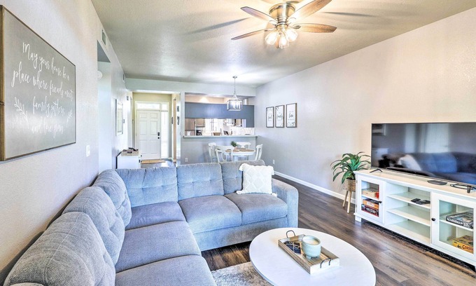 Get ready to soak up some sun when you venture to this Arizona vacation rental. With shops and restaurants nearby, this 2-bedroom, 2-bath abode is the perfect setting for a fun-filled trip with your loved ones or best friends. Spend your days strolling through Thunderbird Conservation Park, teeing off at The Legend at Arrowhead, or cheering on the Arizona Cardinals. Then, head home to chef up a meal in the full kitchen before taking a nighttime dip in the community pool!