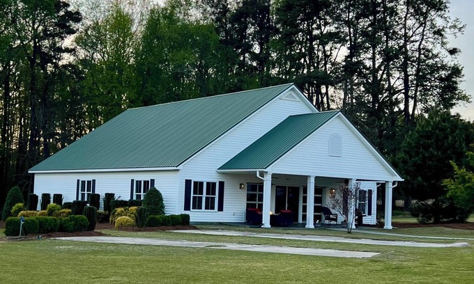 This exquisite property is conveniently located just 25 minutes from the famous Pinehurst Resort and a mere 10 minutes from downtown Sanford, North Carolina, where you can explore local breweries, restaurants, and entertainment options. With the Tobacco Road Golf Course only two miles away, your wedding weekend can blend relaxation with adventure. Whether you're looking for a picturesque location for your ceremony or a vibrant setting for your reception, the Golf Destination w/Private Driving Range w/Lights, and Bar offers all the elements needed for a truly remarkable celebration. Book your stay today and start planning the wedding of your dreams!