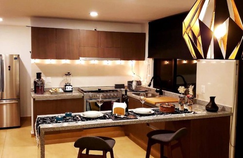 Our accommodation is located in the Zibatá Golf natural enclave. A unique residential development in Mexico where you can do outdoor activities, contemplate nature, practice golf or simply enjoy the wonderful views of Queretaro. The house has a fresh and modern Mexican industrial style. It is ideal for couples, business travelers, families, group of friends and lovers of nature. In the house you have a two car private parking, the kitchen is fully equipped to cook anything you want and also in the garden you can a very nice grill to cook you favorite food. The house is also located in a private condo where you can also enjoy the swimming pool, gym (both Included) and in the very close Golf Club (additional cost). Close to the house you also can find nice shops where you can get all food you need.