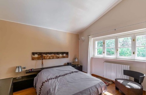 A stunning villa amidst serenity, it is conveniently located at a 15-minute drive from the beaches in the Italian Riviera. The hillside villa is situated on the ground floor and spread across 3 spacious levels. It has five bedrooms and two separate living rooms on two floors and comfortably accommodates a group of 12. Filled with natural light, both these living rooms are extensive and well furnished. The first living room directly opens onto the garden and the other one provides beautiful outside views from the balcony. There are two separate dining areas as well, one of which has a fireplace, a TV and sofas with the dining table set.