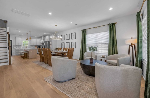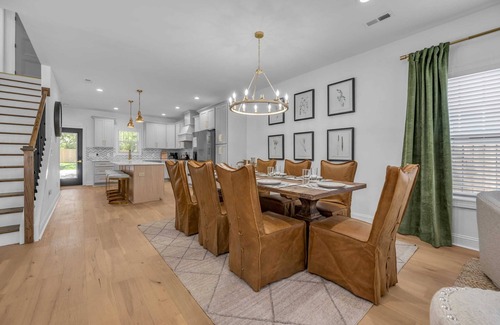 Welcome to this beautiful Airbnb home with an open-concept first floor layout, featuring a fully equipped kitchen, spacious dining area, and cozy living room, all seamlessly integrated for a warm and inviting atmosphere.