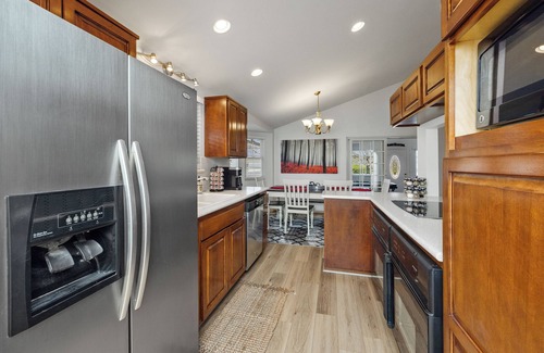 Dewey is waiting for you at this 3-bedroom house. This adorable property features 2 queen beds, 1 bunk bed, and 2 bathrooms with a bathtub and/or shower. The game room includes a pool table, foozball game, Smart TV and offers an extra futon for added comfort. With WiFi, a hair dryer, and a washing machine, guests can relax and unwind in this delightful space. A great place to call homebase while you're away, we hope you enjoy your stay.