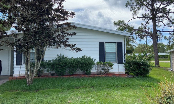 Come and relax in the Florida sun. Golf or just sit in the sun at the beach. Either way you won't want to leave. This 2 bedroom 1.5 bathroom home hidden away on beautiful and friendly, private Meadowbrook Ct. in Lake Fairways 40+ park. The house has just recently been updated with master & guest bathroom renovation. It is also only a short 20 minute car ride to the beach. The master bedroom has a king bed with half bathroom attached. A guest bedroom with queen bed is located adjacent to the second full bathroom. There is a beautiful lanai with A/C if needed. This is great for relaxing with your morning coffee or entertaining friends and family. The house has a flat screen TV cable, and WiFi. Within a short walk or rid you will be at the beautiful clubhouse, with large community pool or an 18 hole golf course. Or go a little further and you can also enjoy all the amenities that Pine lakes has to offer. Another 18 hole golf course, driving range, lighted tennis courts, and lots of activities such as fitness center, library, pool and ping pong room, restaurant where some really fun karaoke is held Friday nights in season. Plus there are many other amenities which can be used by Pine lakes and Lake Fairways renter's. Our park offers a large number of classes during peak season you would be welcome to participate in should you choose. For ex. line dancing, zumba, several different types of water aerobics, other types of workouts, Tai Chi, ceramics, to name a few. We are close to shopping, restaurants, Publix groceries and Walgreens. Just bring your clothes, suits, clubs and rackets everything else is furnished. Towels, linens, iron, ironing board, and a well stocked kitchen with dishwasher, microwave etc. Sorry we don’t allow pets. Our home is available for annual rental if you would like. Ask for rate per month that is all included. We would love to have you stay!