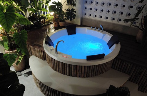 Everything becomes simple at this peaceful when you relax with jacuzzi pool in the tropical-style garden.