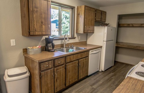 Prepare family meals in the full kitchen or grill outside on the gas BBQ (propane tank level not monitored so let us know if it is getting low) and sit down for dinner at the large dining table with space for 4. The well-equipped kitchen features a full suite of appliances including a drip coffee pot and electric kettle. When it's time to turn in, you've got two bedrooms to choose from, each with king beds. Closets have shelving and hangers. The bathroom features a tub/shower combo. In the garage (which is also used for owner storage) you will find a washing machine and dryer.
