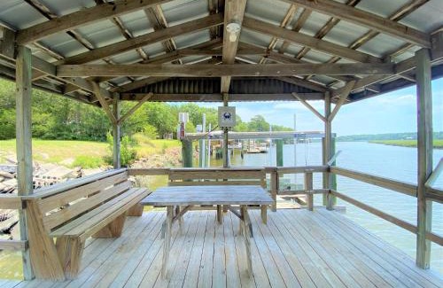 - Water-view house with beach access, large decks, outdoor fireplace, games, dock