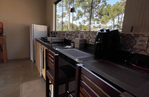 Nestled in Gonçalves, this 1-bedroom, 1-bathroom chalet brings it all within your reach. Fans of nature and the outdoors will love being 21 minutes by car from Waterfall Cruise and 57 minutes from Ecoparque Pesca na Montanha. You'll easily make the 31-minute drive to Pedra Chanfrada or the 25-minute drive to Simão Waterfall.