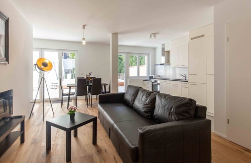 TOP Modern Serviced Apartments in beautiful Binningen next to Downtown Basel. Only 2 tram stops or 5 minutes by Tram no. 10 or 17. Station "Schloss Binningen". Bright and spacious living and dining area with open kitchen. Comfortable boxspring beds, and modern bathrooms. All apartments have fully equipped kitchens for your convenience to prepare your own meals. There are washers and dryers for your laundry needs.