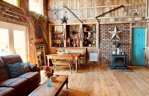 Come stay in the huge Barn converted to a beautiful mountain getaway that boast exposed hand hewn beams, rustic reclaimed wood floors and walls, and a beautiful wood burning stove. Plenty of room to gather while everyone has private bedrooms to retreat to for rest and relaxation. Three levels of decks with views of 60+ miles of the Blue Ridge Mountains. Come make unforgettable memories on at Good Place Farms