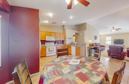 Good Times in Goodyear offers accommodations in Goodyear, 20 miles from Copper Square and 20 miles from Phoenix Convention Center. This vacation home offers air-conditioned accommodations with a patio. The vacation home also offers facilities for disabled guests. The vacation home features 4 bedrooms, a fully equipped kitchen with a dishwasher and an oven, a washing machine, and 2 bathrooms with a hair dryer. Towels and bed linen are offered in the vacation home. For added privacy, the accommodation features a private entrance. Guests may eat at the on-site restaurant. For guests with children, Good Times in Goodyear provides a children's playground. Guests can also warm up near the outdoor fireplace after a day of cycling. State Farm Stadium is 13 miles from the accommodation, while Arizona Capitol is 19 miles from the property. Phoenix Sky Harbor International Airport is 23 miles away.