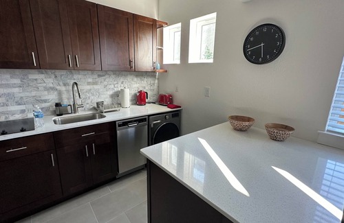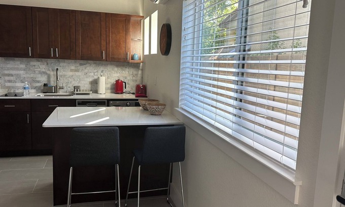 Beautiful fully equipped guest house in a wonderful neighborhood, 5 minutes from Lake Travis & Hippie Hollow Park. Attached to our house, so whatever you need, we are there for you. Peaceful area with amazing hills and lake views getting to it. The guest house has excellent natural light in a relaxing neighborhood. Parking up to 2 cars on the gravel in front of the guest house and direct access to the guest house. There are no shared areas between the guest house and the main house.