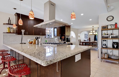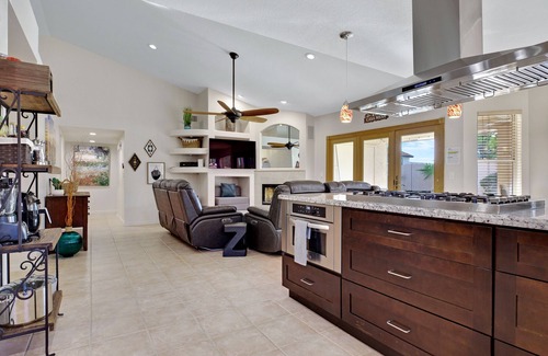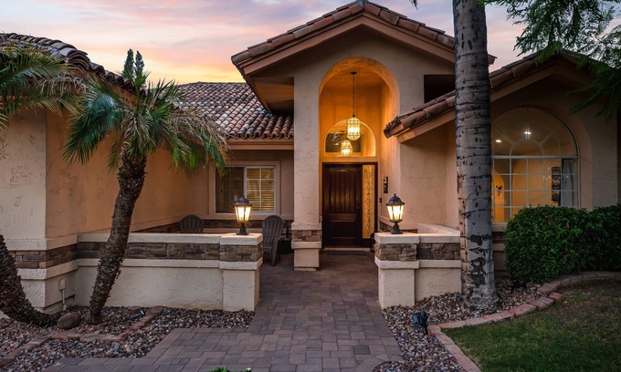Feel the Good Vibes at Casa Mesa~ If you enjoy golfing, sporting events, spring training (15 min to Sloane Stadium-Chicago Cubs), NASCAR, Ghost Towns, Old Town Scottsdale, Saguaro Lake, Tubing or Canoeing down the Salt River while seeing wild horses drink from the river, hiking Camelback Mountain, swimming and relaxing in the pool after a great day in the warm sun, then THIS is the house for YOU! Casa Mesa is centrally located, it's spacious and inviting single story floor plan has 4 bedrooms (sleeps 9 comfortably), 2 large bathrooms, 2500 SF, 3 flat screen TV's and has all the comforts of home and more. The large, well-equipped kitchen has everything you'll need; double ovens, gas stove with six burners, large island to serve meals or just hang out, large dining table, spices, blender, air fryer, crock pot, Keurig coffee maker & a rice cooker. Game room with air hockey and a toy box for the little ones. A perfect home for the holidays or family gatherings. Peaceful outdoor area with couch and misters for those warm evenings. Outside you will enjoy two BBQ's, a fire pit to roast smores, a refreshing pool to float in which can be heated upon request, fees apply. Drink your morning coffee in the hot tub as you enjoy watching birds and the sun rise each morning. Casa Mesa is the perfect house for you to make traditions and memories that will last a lifetime~