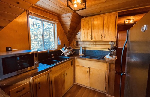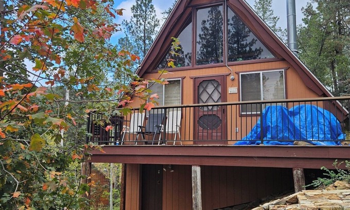 Classic A-frame cabin with Japandi inspired interior design nestled in Prescott National Forest . The home offers 2 rooms where you can have a relaxing space while spending a comfortable time, and a good night sleep