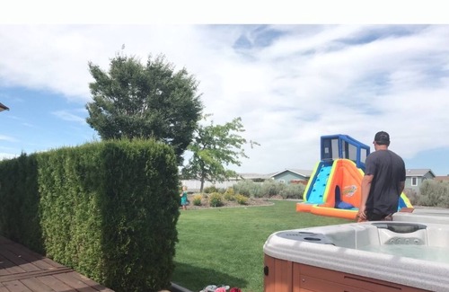We love it here and hope you come enjoy the sun! Nice neighborhood of Desert Aire, large yard for family fun, hot tub, and plenty of parking. Smoker and bbq. 30 Minutes from the gorge for concerts and I have a contact for shuttle or driver to and from shows. Golf, community pool, and river for boating. There is a playground and running trail along the water. There is a winery five minutes away- a local restaraunt and the town Mattawa has great food and market.Hi Greta, thankHappy to help with any questions. Our home has one of the largest yards in the community- we keep it green because the water cost so much less, so it is perfect as our kids run around it all day long and play nonstop. (We bring a blow up water slide they love to play in). Also, our road and area are in a nice area and have a view of the river. The kids can safely ride their bikes and we always walk to the park and pool which is about a half mile away. We live in Seattle so this is the kind of childhood we wanted to offer them. We have a great deck where you should be spending most of your time outdoors w hot tub. We have a boat we take out on river. ( or paddle boards) We have a bbq and a smoker on the deck, the kitchen is fully stocked- cappuccino maker, blender, and fruit press, ect. We would need your names for pool passes. I’m happy to answer any more questions. Thanks!