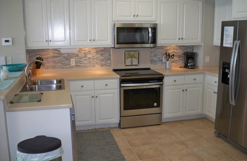 Professionally decorated in a coastal living/shabby chic theme, your family will enjoy the soaring nine-foot ceilings, a beautiful fully appointed kitchen, cultured marble tubs with glass enclosures, and just the joy of being in a beautifully furnished CONDO.