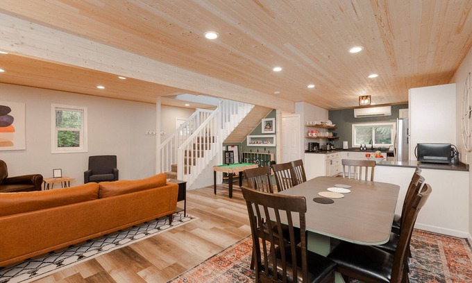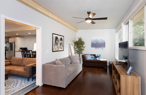 Nestled on a secluded lot between stunning Hood Canal and the Olympic National Forest, this newly renovated 2BR cabin offers relaxation and fun for a couples getaway or group trip for up to 7 guests. Freshly renovated with a new kitchen and gorgeous features around the home, our Brinnon cabin getaway has everything you need to enjoy an extended vacation or a weekend away, with plenty of nearby outdoor activities and a comfortable landing place at the end of the day. Firepit, indoor and outdoor games, movies, and a full kitchen for cooking makes for a relaxing, fun stay for the entire family. Three comfortable queen-sized beds are available, as well as a brand-new pull-out sofa bed comfortable for one (or two small people).