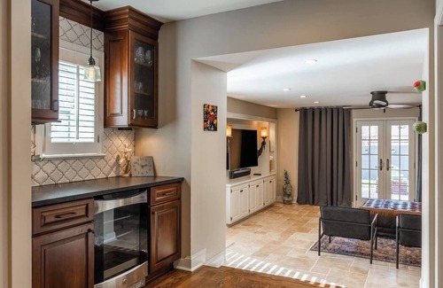 The large den is great for a movie night with friends and family. For the adults, enjoy the speakeasy bar for nights when you just want to gather at home. You'll also have access to two patio areas and a fenced in backyard to sit out and enjoy the beautiful Kansas City weather.