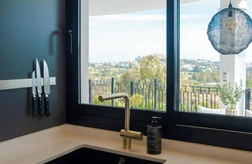 Villa also offers modern conveniences such as a smart home system to control energy and security, a wine cellar, plenty of storage space, and a parking area with space for three vehicles.. The villa is located just 0.2 km from La Quinta Golf & Country Club and padel courts, 1 km from mountain hikes, and 4 km from the beach, making it the perfect retreat in a prime location.