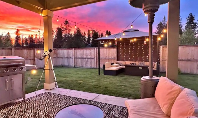 Tucked beneath the tall pines, this adorable La Pine home offers a peaceful escape with clean, updated interiors and a fully fenced backyard. Minutes from hiking, Crater Lake and endless adventures, it’s the perfect base for exploring Central Oregon. Relax under the stars next to the fire, play games, or stream your favorites on the smart TV. Quiet, stylish, and pet-friendly—your Lapine getaway awaits! Beds: Cali King, twin bunks, twin daybed and twin trundle, two queens, and full hide-a-bed.