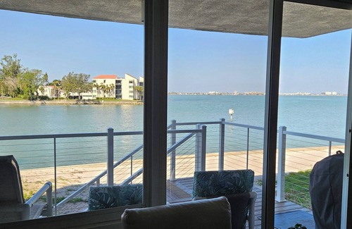 This property is located between St. Petersburg and St. Pete Beach on an island with easy access. It has a waterfront location on Boca Ciega Bay which provides beautiful views both day and night. There is assigned parking directly outside the door of this first floor unit for quick and easy access.