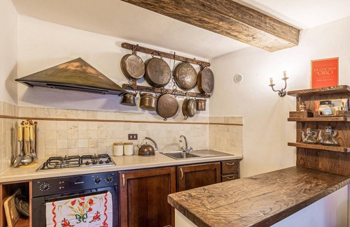 Immerse yourself in the tranquil life of the enchanting Italian countryside just south of Todi. The apartment is located in a medieval country hamlet built on the remains of a Roman building. From here you can enjoy a marvellous panoramic view over the valley. The holiday apartment impresses with its authentic ambience. The warm colours of the interior, rustic wooden beams and traditional terracotta floors give the accommodation a special flair. On the mezzanine floor, the living room with direct access to the garden invites you to linger. Use the well-equipped kitchen to prepare regional specialities yourself and enjoy your meal either at the stylishly laid dining table or outside.