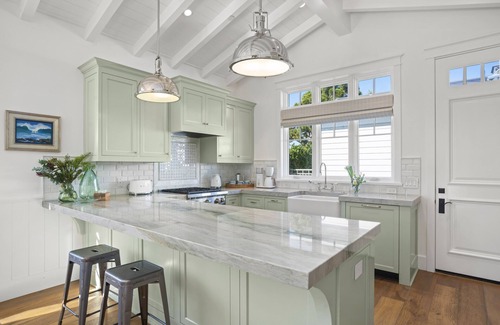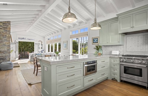 Chic European white oak flooring, Italian marble tile and stone countertops throughout further enhance the Del Mar Cottage experience.