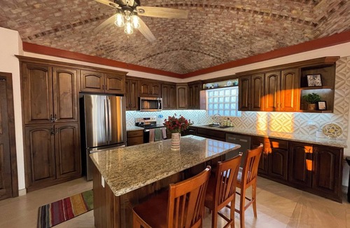 The home has a large gathering area with an incredibly beautiful boveda ceiling. All furnishings are brand new. Please take care of our home like you would your own. All rooms have A/C and heat split units.