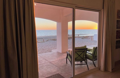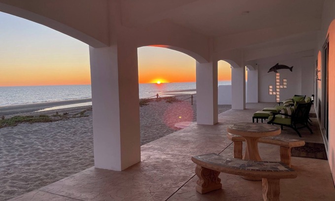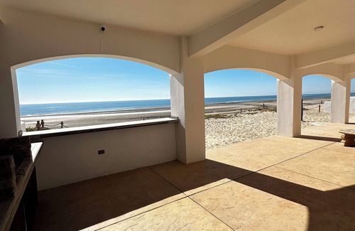 A serene beachfront home nestled along the pristine coastline of the Sea of Cortez. This newly built casa offers an abundance of space, both indoors and out, providing a perfect sanctuary to unwind and enjoy your family. The open floor plan emphasizes the breathtaking ocean views, with large windows letting in the warm Mexican sun.