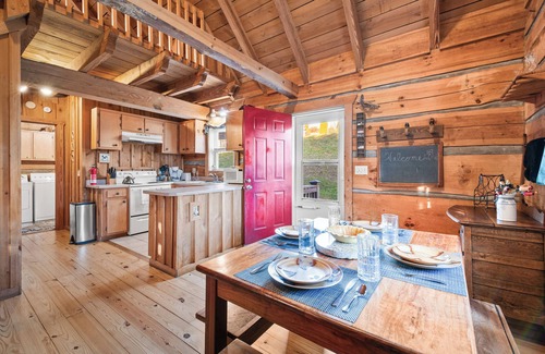 • Space: Contemporary 2-bedroom log cabin (Master on main level, loft bedroom upstairs)