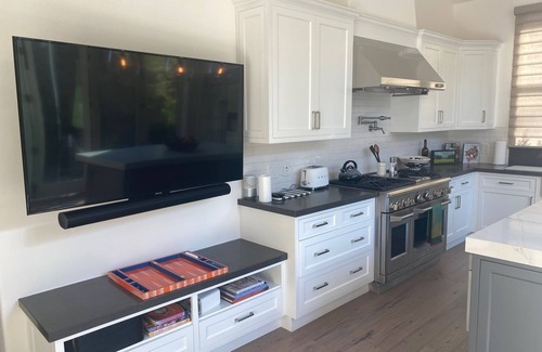 Sunny contemporary home with designer furnishings! Beautiful artwork and luxurious linens.